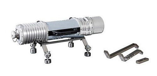 Одним из вариантов размещения рентгеновских аппаратов на объектах проведения радиационного контроля являются крепежные приспособления серии «Паук-2М», изготавливаемые согласно утвержденной нормативной документации – ТУ 4276-020-96651179-2015. В конструкцию крепежных приспособлений входит четыре ноги, магниты мощного действия и сам держатель для оборудования. Исполнение держателя зависит от модели используемого в работе рентгеновского аппарата и выполняется в виде или обжимной муфты, или плоского основания. С помощью регулировочного механизма с шаровой головкой и фиксатором барашкового винтового типа на ноги конструкции крепятся магниты, такая конструкция разрешает располагать приспособление с оборудованием на трубопроводах диаметром больше 200 мм. Также применяется и для объектов контроля с полоской поверхностью. В комплект приспособления поставляются сменные ноги различной длины, разная длина ног необходима для регулирования фокусного расстояния при проведении контроля.