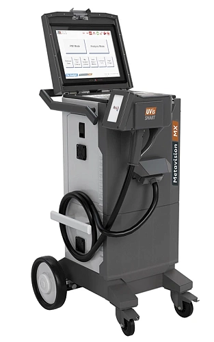 Metavision MX+ – расширенная версия мобильного оптико-эмиссионного спектрометра Metavision MX+ – позволяет проводить измерения сверхнизких концентраций элементов на уровне 5 ppm. Спектрометр оснащен выносным датчиком для измерения химического состава сталей и сплавов непосредственно на самом изделии. Благодаря выносному датчику, который подключается к спектрометру через специально разработанный для работы в сложных условиях кабель длиной 3 метра, имеется возможность измерения непосредственно на самом готовом изделии без необходимости его перемещения в лабораторию. Высокая мобильность прибора обеспечивается легкой встроенной тележкой. Благодаря мобильности и высокой точности измерений спектрометр хорошо подходит для применения при входном контроле изделий, на складах готовой продукции, на предприятиях по приему и переработке лома и т. д.