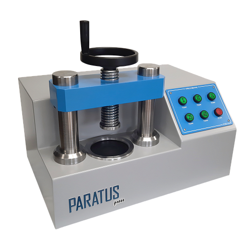 После окончания запрессовки, откройте верхнюю крышку, нажмите кнопку вверх, образец автоматически поднимется и готовый образец можно забирать.